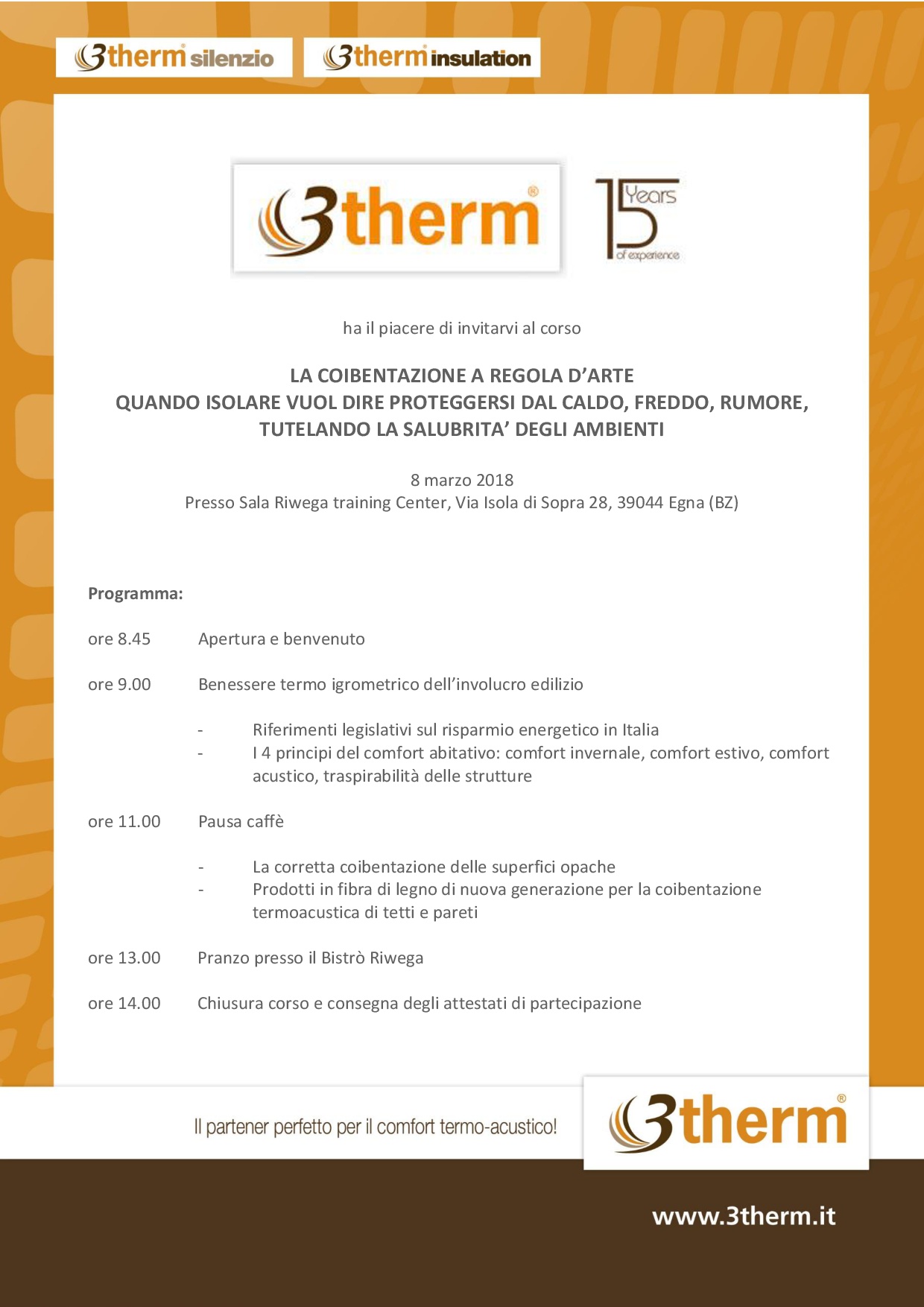 Luogo: Riwega Training Center, Via isola di Sopra 28, 39044 Egna (BZ)
